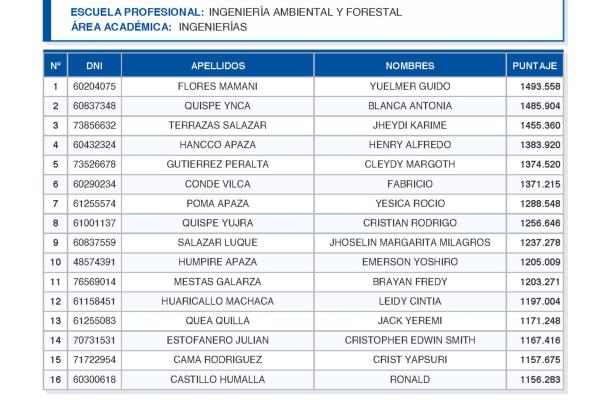 Escuela Profesional de Ingeniería Ambiental y Forestal - UNAJ